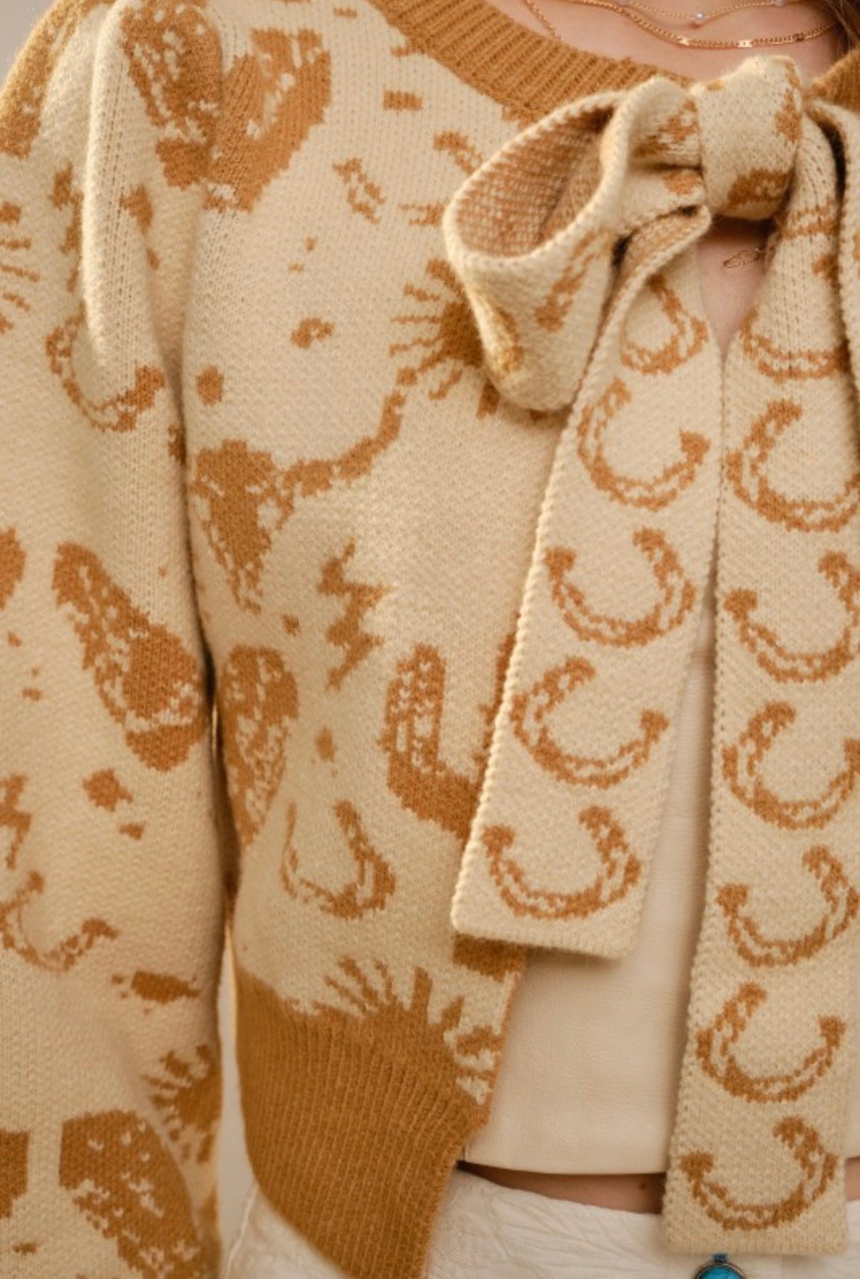 Western printed cardigan with a front tie