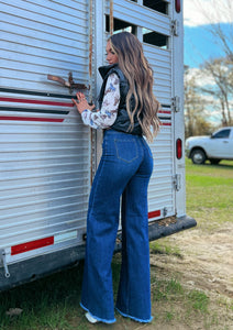 High waisted wide leg jeans with front seam details